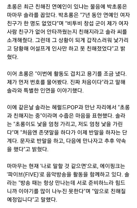 연예계 7년생활동안 여자연예인친구가 1명도 없었음