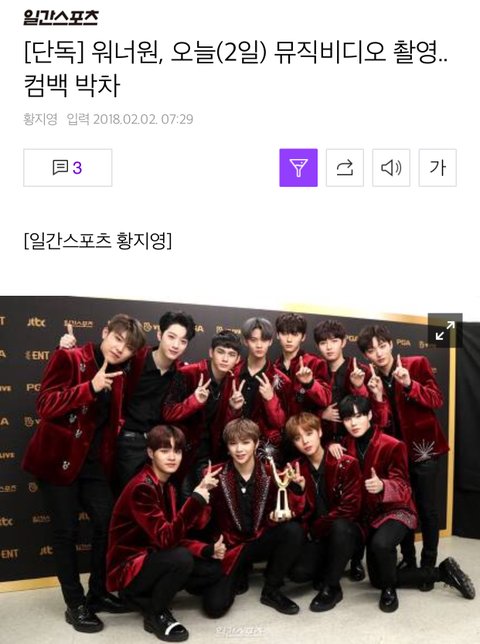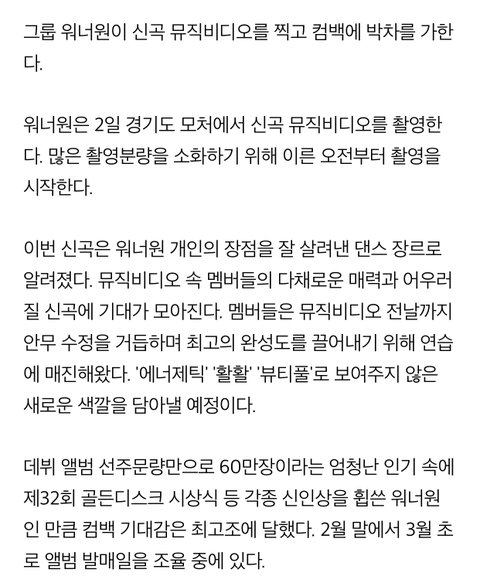 믾모닝❤️ 오늘부터 뮤비촬영!(기사)