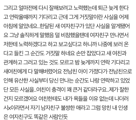 많이들 이별할때 예의를 카톡에서 따지는데 이별하면 그냥 남이에요... 잠수안타고 이별을 전하는것만으로도 할도리는 다한거에요