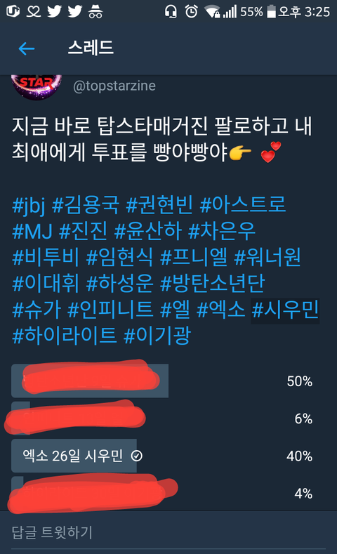 뭔지 모르겠는데 짹 투표 지고 있는 거 있음