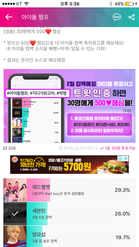 이거 투표해주라 우리 2등이야