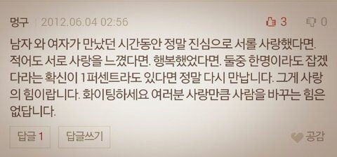" 재회라는게 웃긴게 재회하고 싶어하면 재회가 안되는데 포기하고 생각도 안하고 있을때 연락이 오더라구요! "