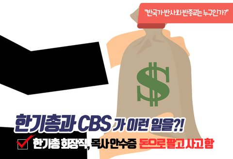 오늘날 성경의 진리를 가르치고 있는 신천지를 '반국가 반사회 반종교'라고비방하는 자들은 바로 한기총.CBS 입니다.허나 이는 자신들의 잘못을 덮기 위한 행위에 불과합니다.