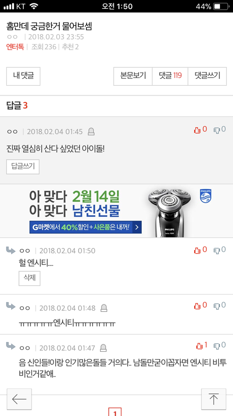 엔터에 어떤 홈마가 물어보면 답해주거 있는데