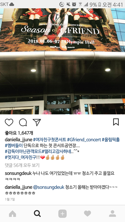 사진은 여자친구 첫단콘 때 쏘스 안무가 박준희(준희쌤)선생님이 인스타에 올리신 글이야! 댓글은 빅힛 안무가 손성득(성득쌤)선생님이시구ㅋㅋㅋ 두 분은 유리구슬 때 포인트를 성득쌤이 전반적인 안무를 준희쌤이 짜는 식으로 같이 짜셨다고 들었어 그래서 친분이 있으신 듯!