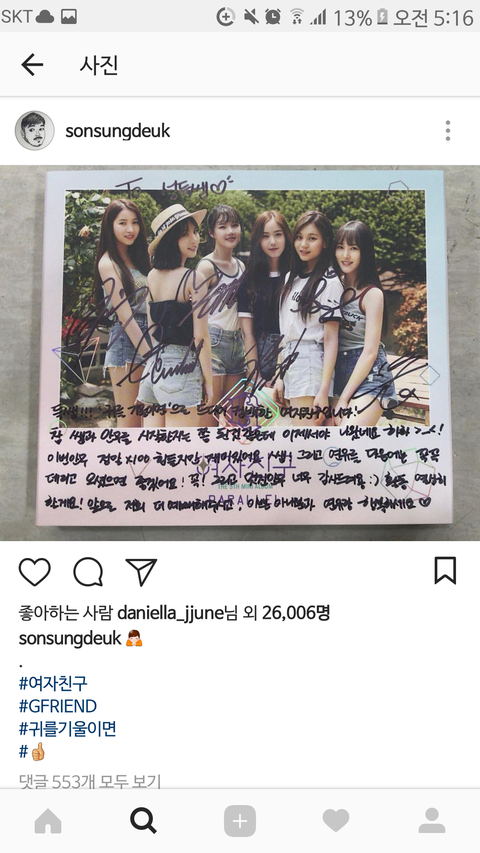 이렇게 여자친구 친필 앨범을 보여주시는 글이 있어ㅋㅋ (글씨체 찾아봤는데 신비가 쓴 거 같아)
