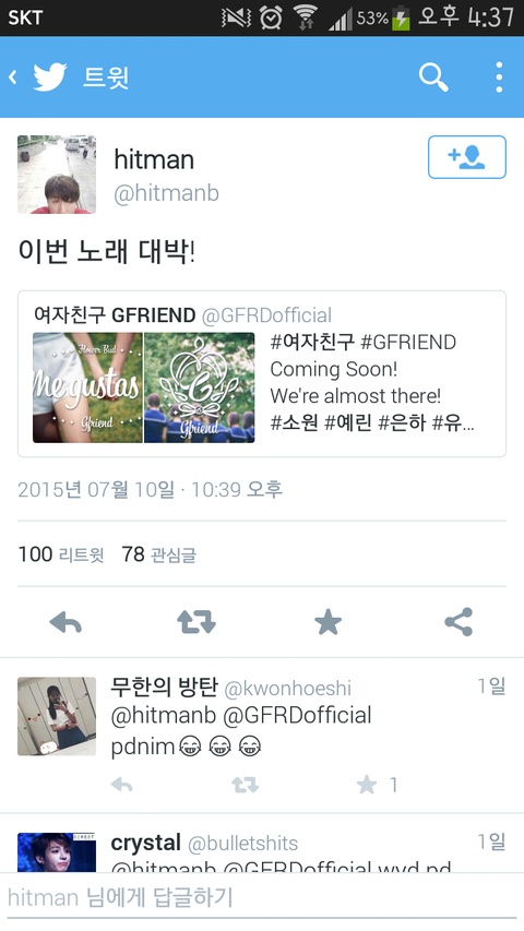 쏘스는 공식 SNS 말고 다른 SNS가 안 보여서 모르겠는데 빅힛은 여자친구 데뷔초부터 응원을 정말 많이 해 주심 그 중에서도