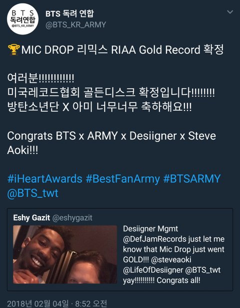 우리 외랑둥이들 벌써 18년 목표 이뤘네 여기 RIAA 인증서 목표야