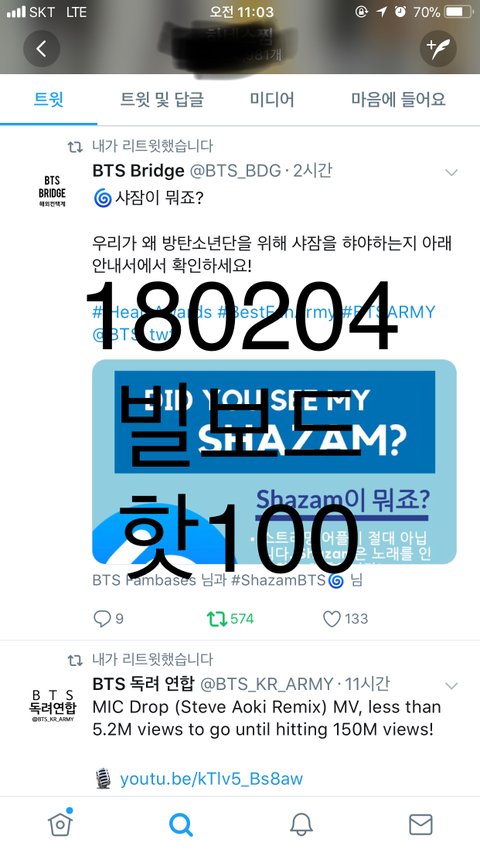 아이핱,샤1잠 = 빌1보드 핫100 반영 (공추)