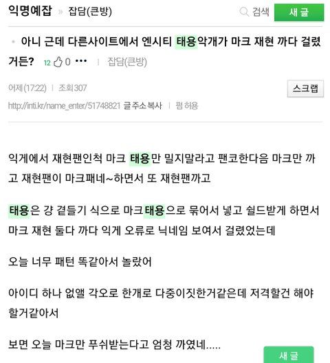 태용악개 이렇게 증거가 확실한데 공론화해서 악개바로잡을생각은 안하고 그저 입막음 하기바쁜 엔시티팬톡...