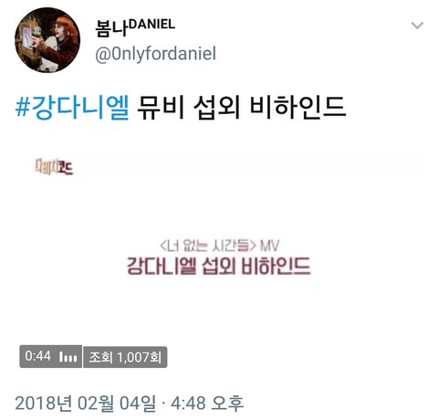 https://twitter.com/0nlyfordaniel/status/960057404321755136 ㄷㅂㅊ분들 영상인데 녤이 뮤직비디오 섭외 비하인드 내용 나와!