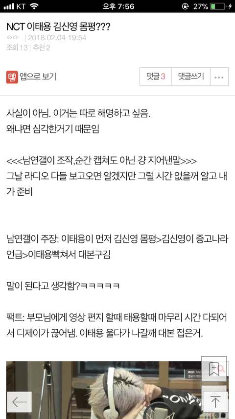 애들아 이글가서 댓글 한번만 루머 반박달아줘