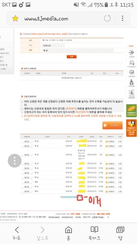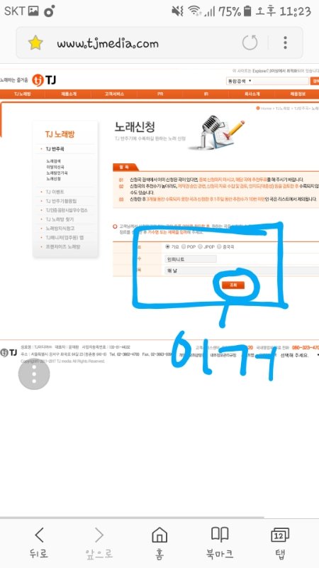 토기들아 나혹시 부탁하나만 해도 될까?? 노래방에 왜 날 추가 될수있게 도와줘ㅠㅠ tj노래방 사이트들어가면 할수있는데 혹시 모르는 사람 있을까봐 사진넣을게!! 하루에 한번씩 가능해 노래방에서 왜 날 부르고싶어ㅠㅜㅜ