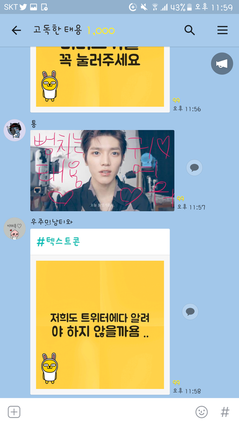 거기 시즈니들도 다른 톡방이나 트위터에 알려야하는거 아니냐고 그러는데...
