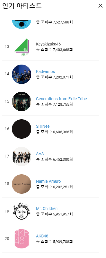 일본 인기걸그룹 AKB48보다도 일본내 조회수가 높은 샤이니