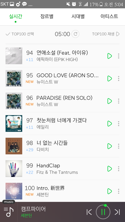 수록곡들 1n위씩 올라갔고