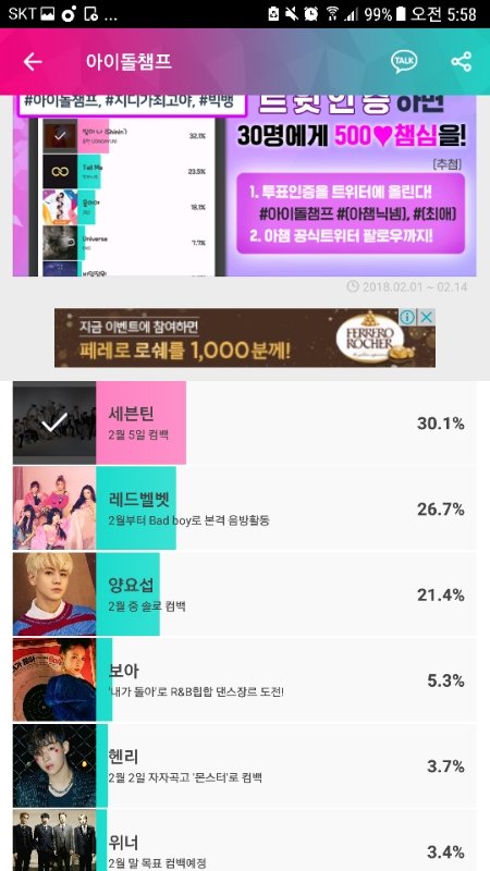 아2돌 챔프 역전했어! 캐럿들 짱이다♡.♡ 그래도 혹시 모르니까 투표 안 한 캐럿들은 얼른 하구와 최ㅇH돌 투표도 아직 하고 있는 거 알지???? 오늘 여섯시에 우리 화력 보여주자 팟팅♡♡!!