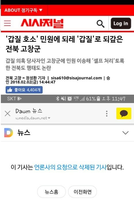 고맙게도 시사저널 정성환 기자는 2월2일 오후 2시에 뉴스를 올려줫지만