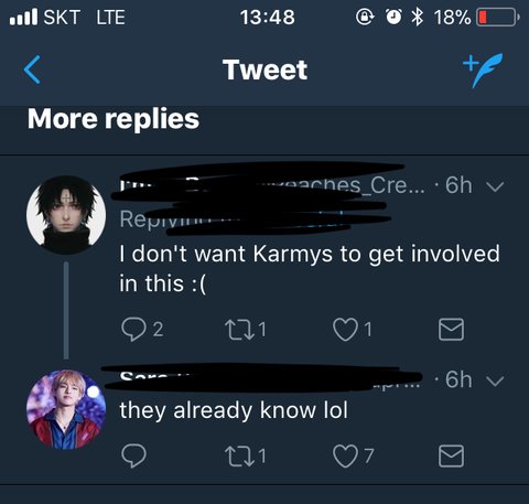 처음 링크 올라갔을 때 외랑둥이 반응.. karmy들이 여기 연루되지 않았으면 좋겠어...