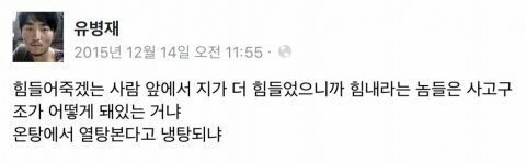 모두들 공부때문이든 뭐든 각자만의 고민과 스트레스가 있는데 그거 비교하면서 쓰니 욕하지는 말자