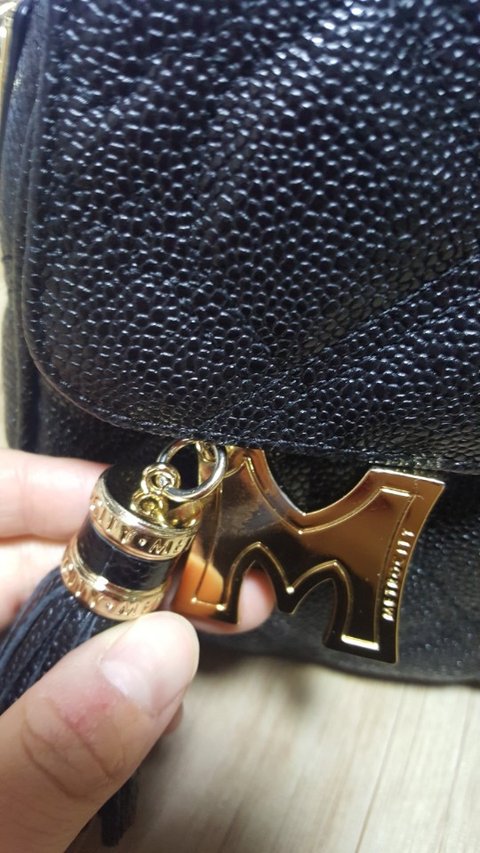 가방을 잘 메고 다니다가, 며칠전 우연히 가방을 보다가 가방 태슬장식이랑 같이 달려있는 금장으로된 M자 로고 부분이 까져있음을 발견하게 되었습니다.