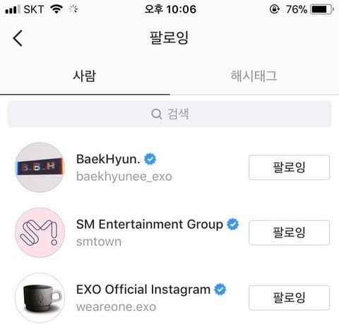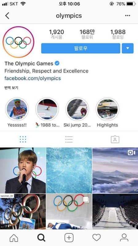올림pick 인별 공식계정이 백현이 팔로우함