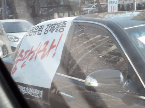 오늘 운전중 앞차에 크게 강제개종 써있는 현수막 단 차가 열심히 달리고 있었음~