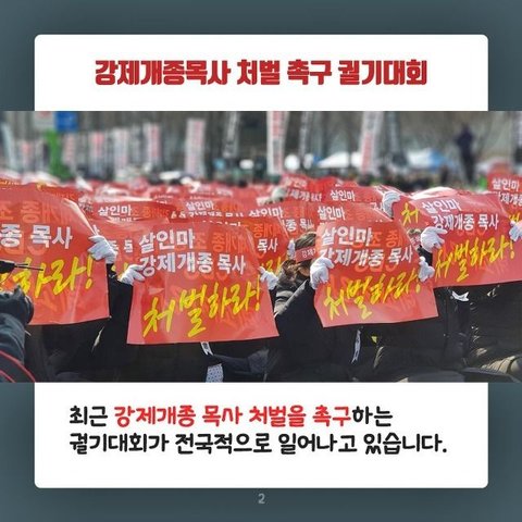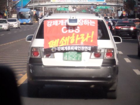 오늘 운전중 앞차에 크게 강제개종 써있는 현수막 단 차가 열심히 달리고 있었음~