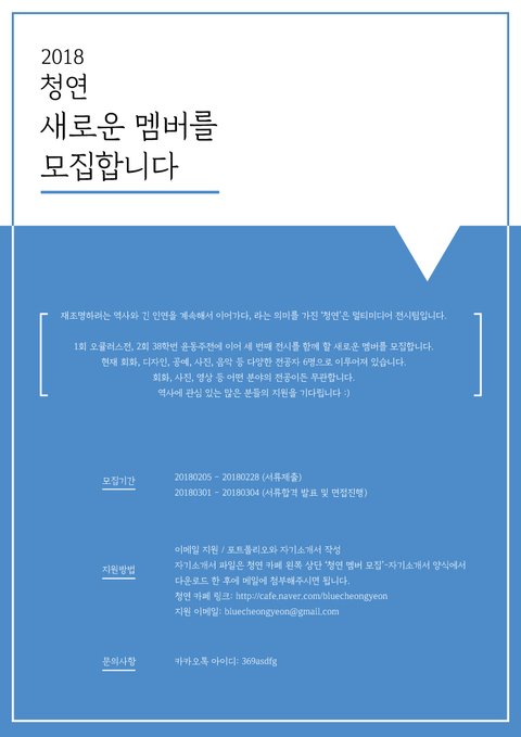 - 자기소개서 파일은 청연카페 왼쪽 상단 '청연 멤버 모집' - 자기소개서 양식에서 다운로드 한 후에 메일에 첨부해주시면 됩니다.
