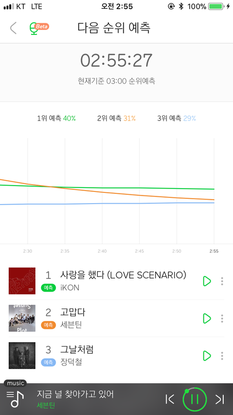 인생 살면서 젤 다급한 순간이다 진짜 제발 제발 제발 버텨 ㅠㅠㅠㅠㅠㅠㅠ 우리 애들 2위 하게 해주자 진짜 음원앱 2위의 순간을 맛보게 해주자고