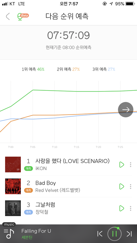 출퇴근길사람들 스밍리스트에있을 어제까지탑쓰리던세곡이 많이틀어지고잌ㅅ나봐...