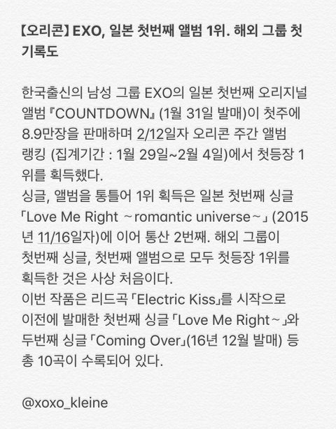 그리고 더 쇼킹한 건 한국이랑 중국 엑소 팬들 많잖아. 중국은 진성 팬들이야 가지고 싶어서 살것이고 한국도 엑소 팬들은 줄세우기에 미치는 편이잖아 그래서 공구를 멤버 개인 팬들끼리 전부 다 했을 거란 말이지. 트윗에서 검색만 해봐도 그래. 그룹 씨디 공구는 그다지 안 보임 ㅇㅇ 그리고 꼭 오리콘 반영하게 사야한다고 한국 팬들 그런거 엄청 예민해서 반드시 오리콘 반영되는 거 확인하고 사더라고