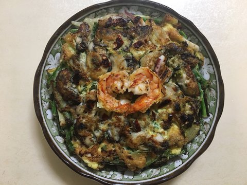 눈오는날엔 해물파전(파전 탄게 아니고 굴이 팬에 바로 닿다보니 저렇게 됐어요ㅠ)