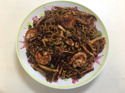 파전하고 해물이 남았길래 얼리긴 싫고 다음날 *파게티로 쟁반짜장 만들었어요ㅎ
