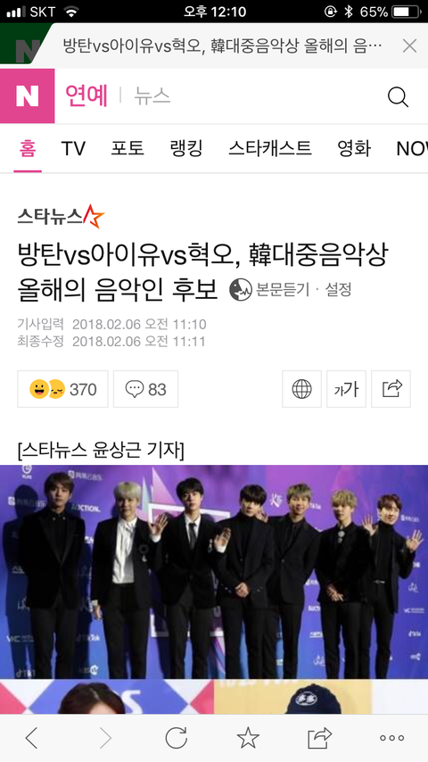 방탄소년단 총 4개 부분 후보