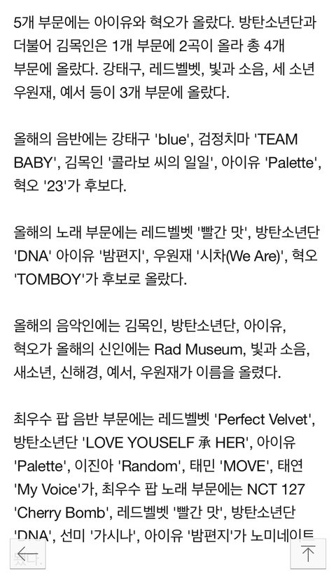 ☑️올해의 음악인상 후보
