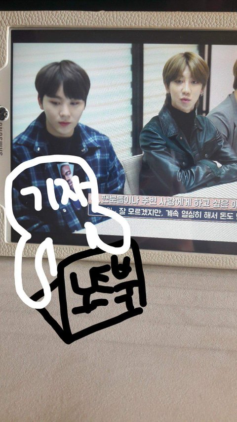 스ㅌㅏ뉴/스 인터뷰 영상 보는데 승관이가 옆에 기자분이 노트북으로 인터뷰 적고계시는거 계속 보고있어 ㅋㅋㅋㅋㅋㅋㅋㅋㅋㅋㅋ ㄱㅇㅇ.. (발그림 ㅈㅅ