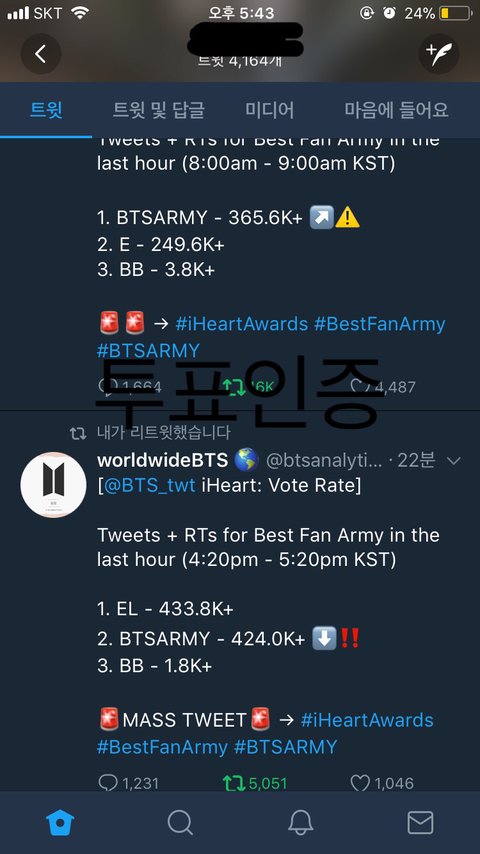 ㅈ금 이시간대에 2위라니 진짜 심각함 어젠 8시쯤부터 역전당하더니 왜이런건지 내 탐라는 진짜 투표 1도 안함 투표의 중요성을 모르는건지ㅠ 이삐들 많을때 회의방 하나 파는게 어때? 아직 한달넘게 남았는데 이대로면 그냥 역전당할듯