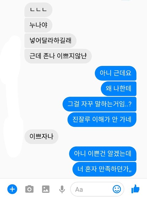 이거는 지 대표사진 보고 이쁘지 않냐고 저번주 부터 그래서 화낸거야..
