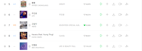 멜롱 차트 세칸 올라갔어!! 7위!!!
