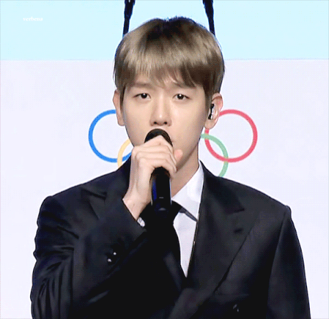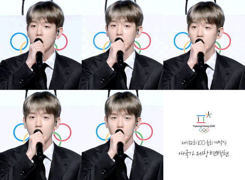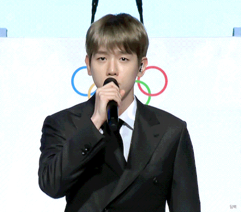 순둥한 얼굴로 애국가 부르는 백현이 gif