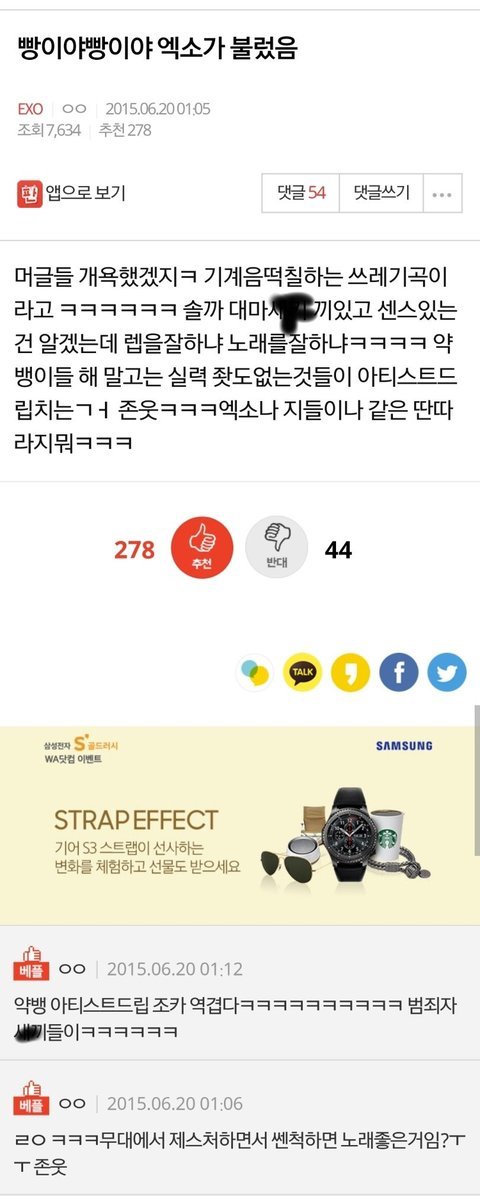 저 로드보이즈인가 쟤네들은 저번에 엑소 1위때 찬열이 가리고 지들이 1위인척 앞에서 까불어서 그런건데 ㅅㅂ년아 느그오빠가 저거 당하면 가만히있을거? 거기다가 로드보이즈 소속사는 팬들 욕만하고 피드백 했다가 삭제하고 번복했는데 ㅋ