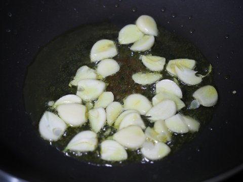 올리브유를 달구고 마늘을 먼저 볶아줍니다.