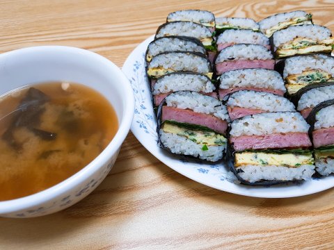 매일 술만 마시는것 같아서 귀엽게 스팸무스비와 일본식 미소장국으로 간편하게 해결!!