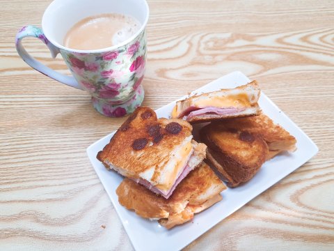 치즈식빵에 또 치즈를 넣고 햄도 하나 넣어서