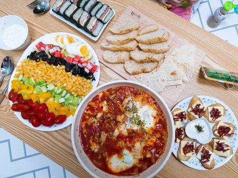 에그인헬, 콥샐러드, 감자베이컨구이, 스팸무스비 ㅎㅎ