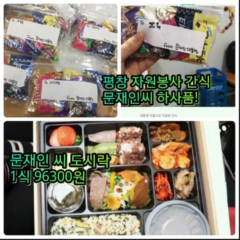 문씨 도시락과 평창자원봉사 간식 하사품 비교