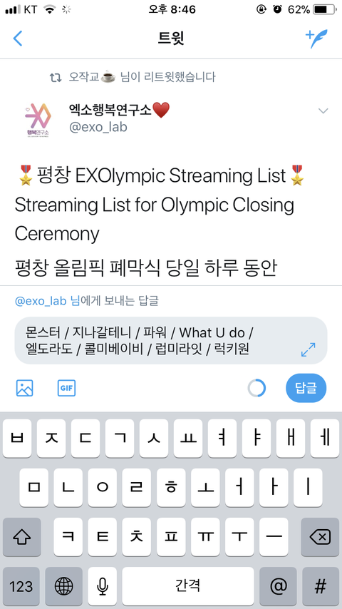 난 큰 행사인 만큼 활달하고 발랄한 장르의 댄스곡이어야 한다고 생각한담! 몬스터는 워낙 비트가 팝송같고 조져서 넣었고 지나갈테니도 비트 오져서 넣었지 나머지는 신나는 노래얌