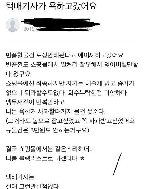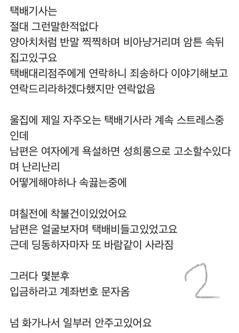 댓글이 달리는 동안 자신의 폰으로 남편이 기사분과 통화하여 혼냈다고 함