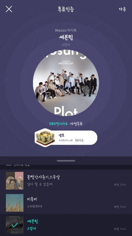 잉가투표는 멜롱아지톡어플 다운받고 잉가1위투표들어가서 총 3팀에 중복안되게 투표를해야해! 그래사 세븐틴하나 그리고 지금 활동안하는 두팀해서 투표하면됭!! 나는 고맙다 위아래로 아무거나 눌러썽ㅎㅎ